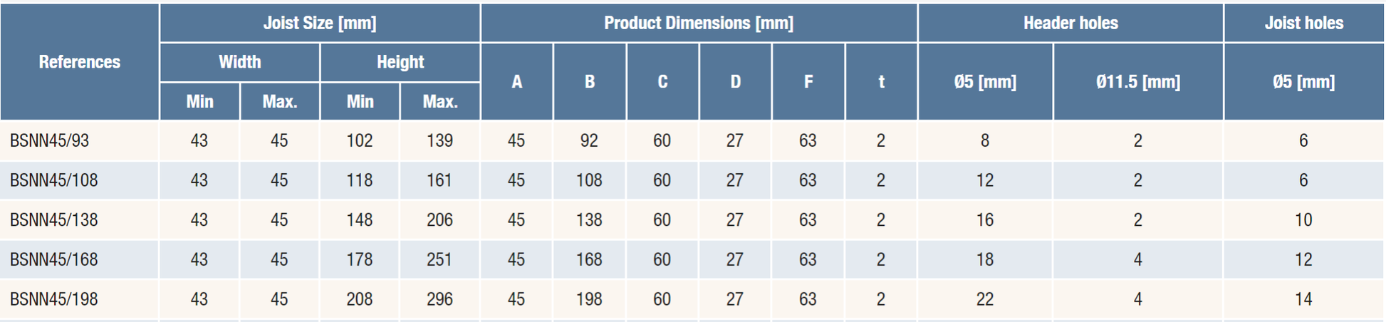BSNN serija - tai tvirti laikikliai, skirti naudoti tais atvejais, kai reikia ypatingo patvarumo. Pakabos prikalamos naudojant sistemines CNA vinis, tačiau jų paviršiuje yra ir skylės 12 mm tvirtinimo detalėms. Pakabos gylis turi būti ne mažesnis kaip 2/3 laikomojo elemento aukščio, kad būtų išvengta konstrukcijos poslinkio, nebent prie laikomojo elemento viršaus pridedamas papildomas šoninis sutvirtinimas.