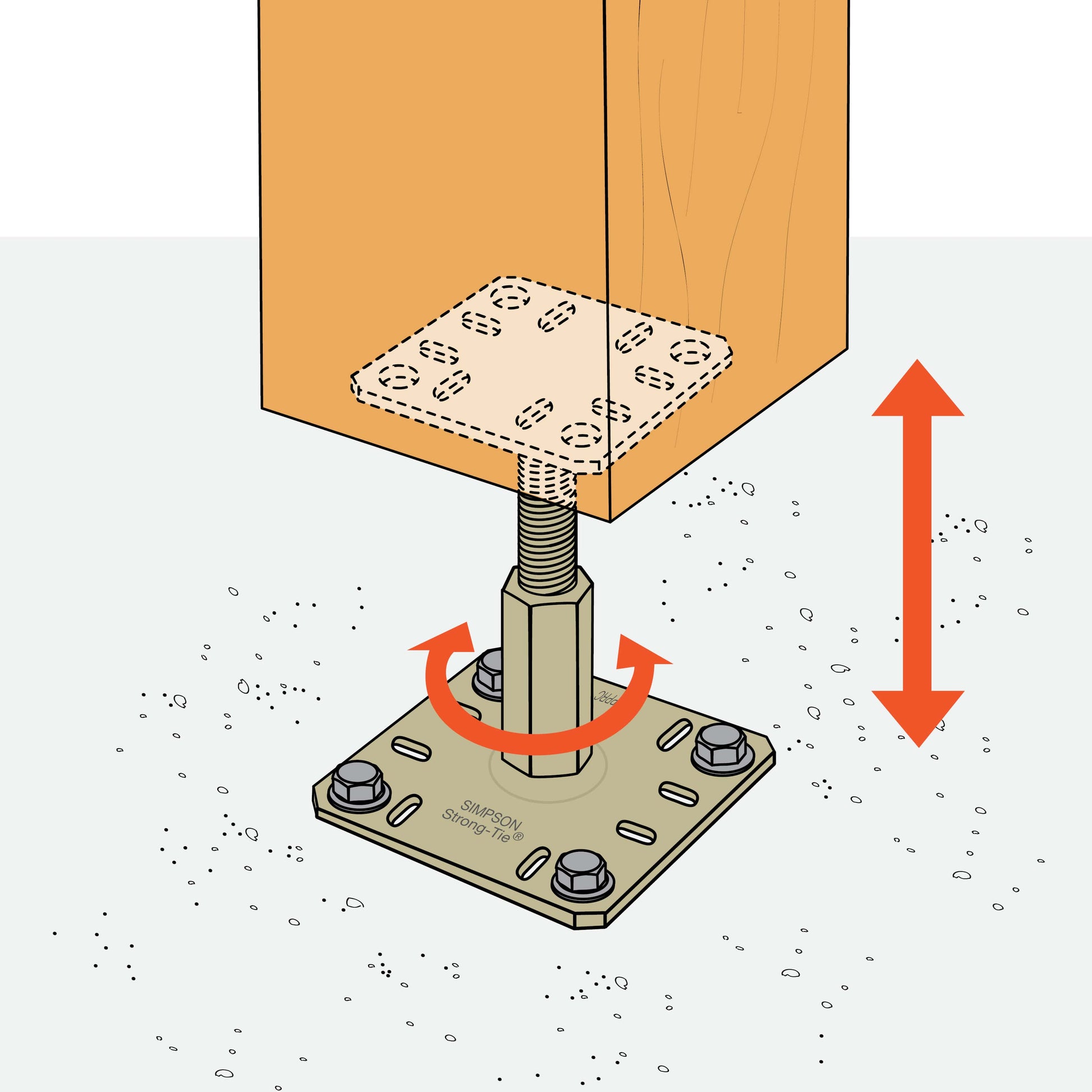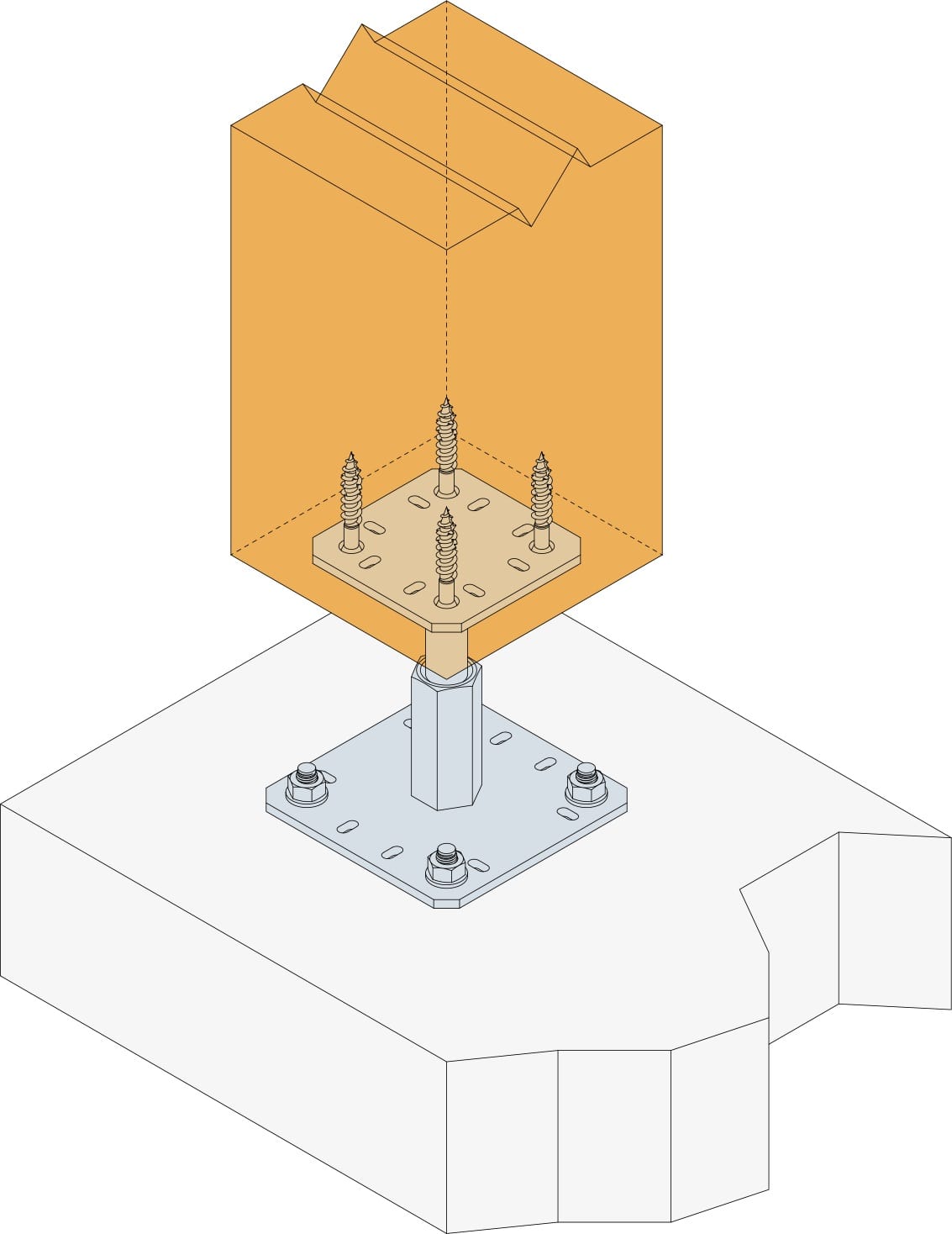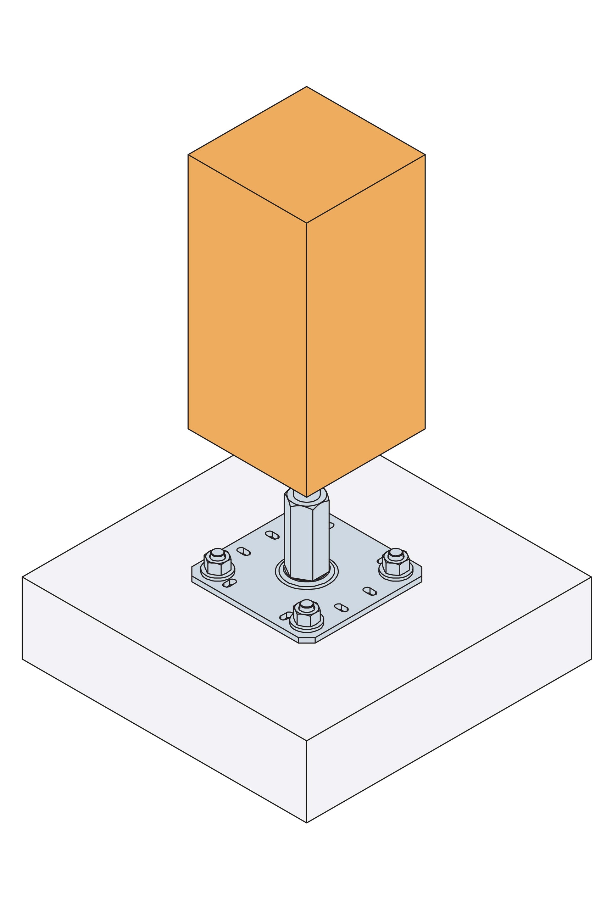 Reguliuojamas polius, skirtas tvirtinimui prie užbaigto pamato. Suprojektuotas vertikalių apkrovų nuleidimui.