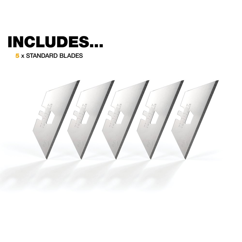 „ToughBuilt“ automatiškai įkraunamas peilis sukurtas atsižvelgiant į patogumą ir universalumą. Nauja geležtė įkraunama paspaudus slankiklį.