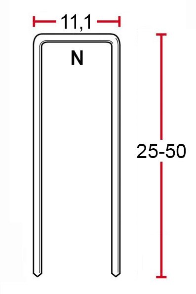 4PRO1450 modelio sąsagų kalimo įrankis kala 14 tipo sąsagas, kurių ilgis nuo 25 iki 50 mm.
