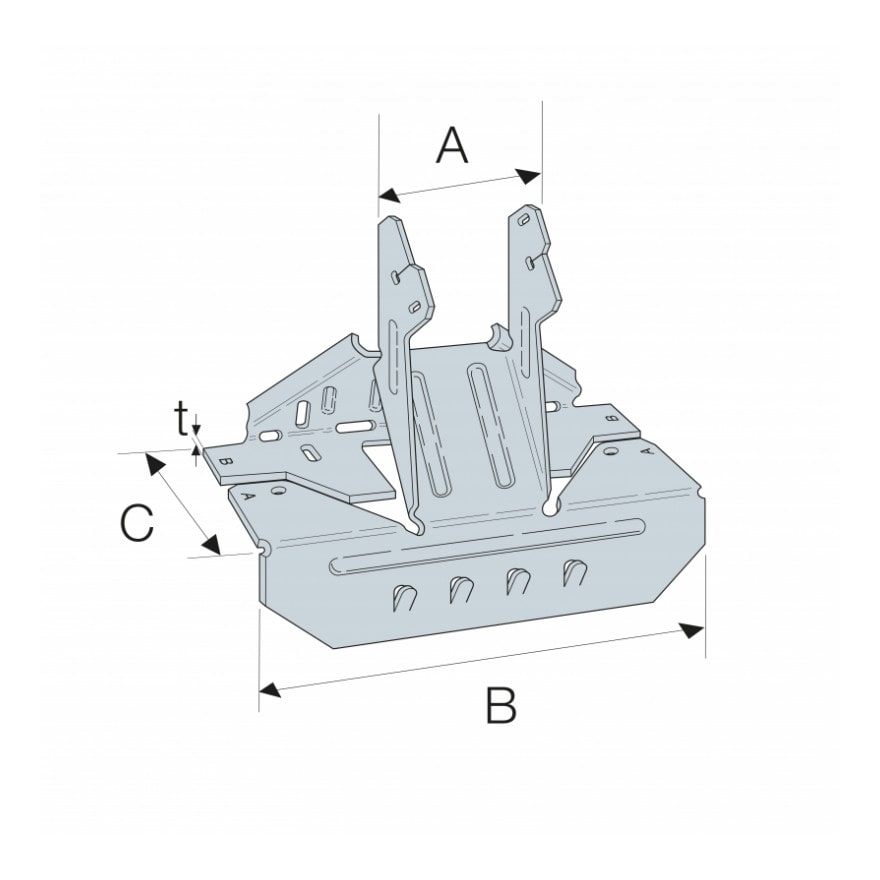 VPA vientisa jungtis, skirta tvirtinti dvitėjines sijas arba gegnes prie sienų plokščių. VPA reguliuojamas nuo 15° iki 45° su specialia blokavimo konstrukcija, rodančia, kada pasiekiamas maksimalus kampas. Šis gaminys papildo universalų LSSU.