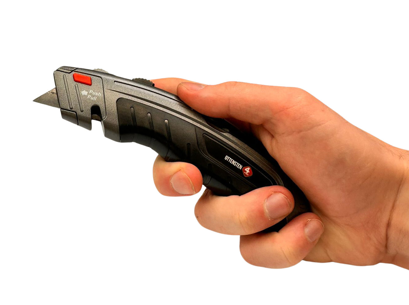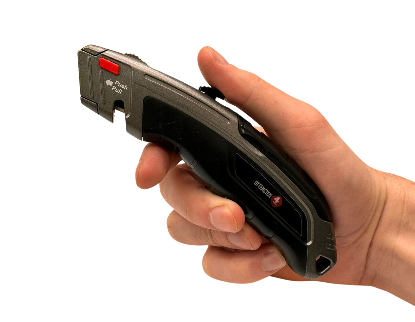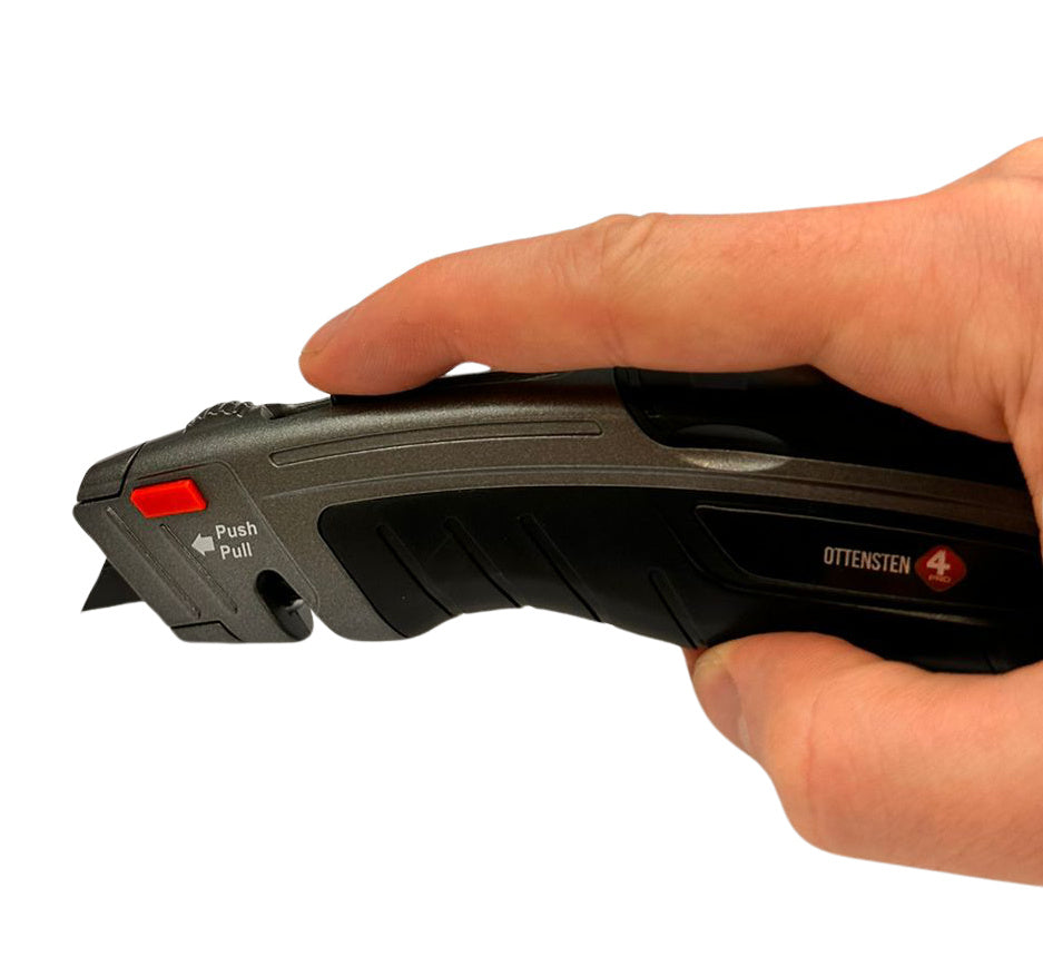 4PRO Heavy Duty trapezoid utility knife is designed for demanding construction and industrial work. The tool features a fully metal body that helps resist mechanical damage, drops, and harsh jobsite conditions. Its solid construction also helps stabilize the knife during cutting tasks.