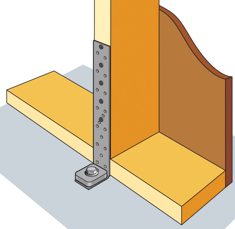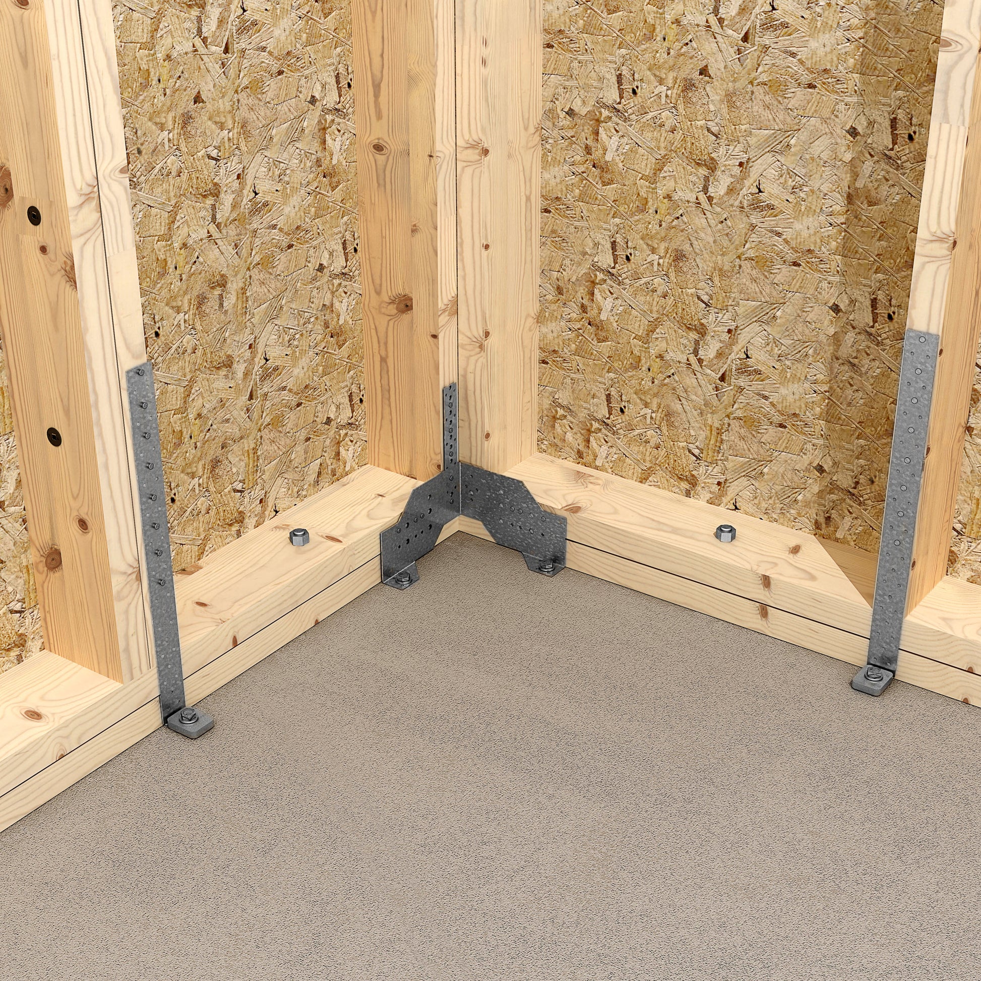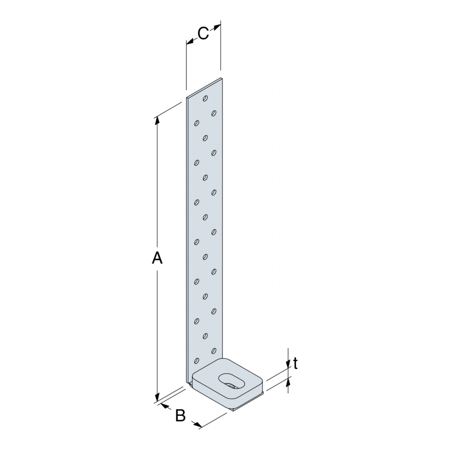 Karšto cinkavimo tvirtinimo kampas, skirtas karkasui tvirtinti prie betono arba mūro.