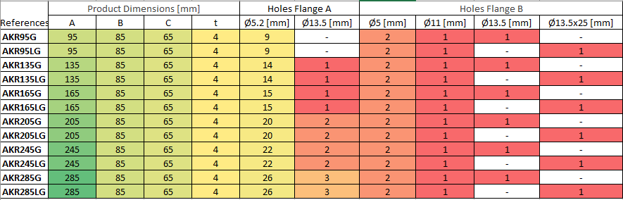 AKR kampai yra sustiprinti ties lenkimu, todėl gerokai padidėja kampo standumas ir tvirtumas.