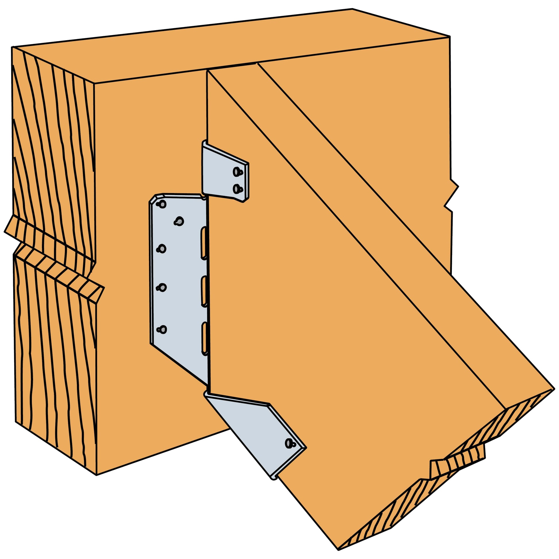 Naudodami šiuos vietoje reguliuojamus laikiklius, visada turėsite tinkamą laikiklį ypatingiems skubėjimo atvejams. Šis universalus gaminys pritvirtina sijas arba gegnes prie medinių atramų bet kokiu nuolydžiu, aukštyn ar žemyn arba bet kokiu pakrypimu į kairę ar į dešinę iki 45° imtinai.
