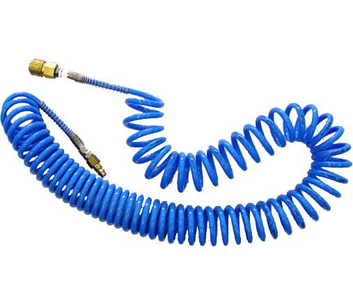 Lanksti poliuretano žarna su jungiamosiomis detalėmis (greita jungtimi ir nipeliu) kompresoriui ir pneumatiniam įrankiui.